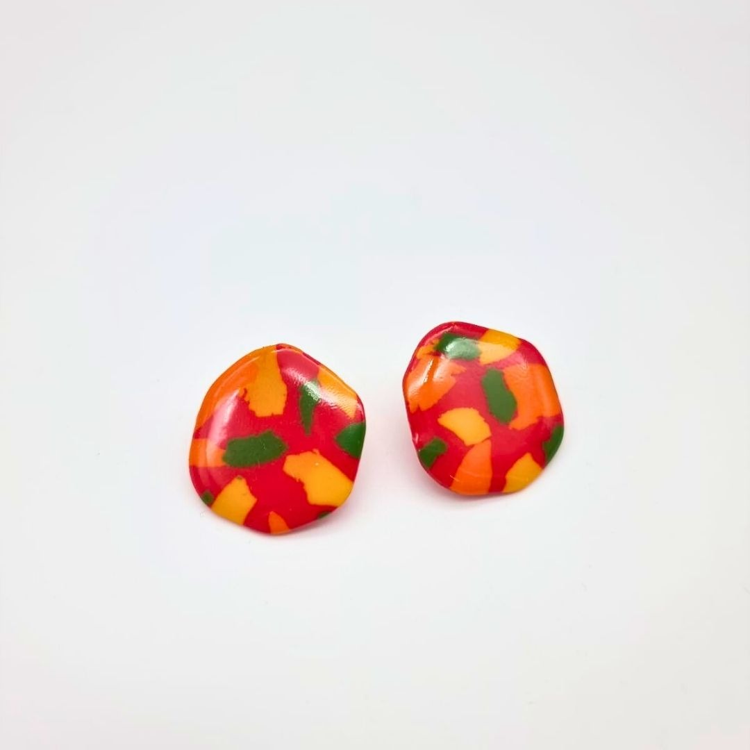 Ces boucles d’oreilles sont réalisées à la main en polymère et résine, avec un jeu de couleurs vives et un rendu légèrement irrégulier qui rend chaque paire unique. Leur format compact et leur légèreté en font un bijou facile à porter au quotidien.