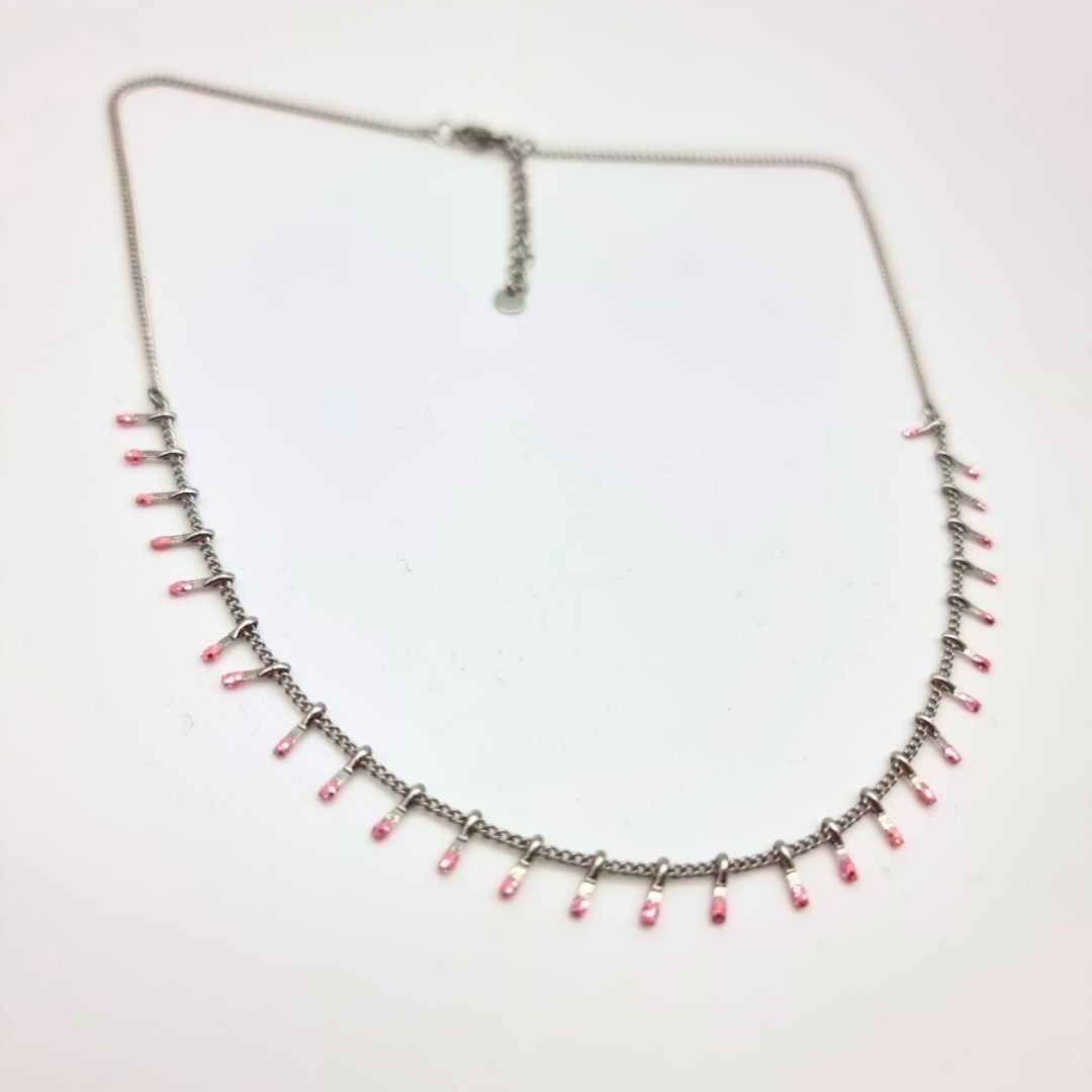 Chaque élément est assemblé à la main, faisant de ce collier une pièce unique, riche en détails et en mouvement. Les pampilles apportent rythme et lumière, tandis que la chaîne épaisse donne une présence affirmée autour du cou.